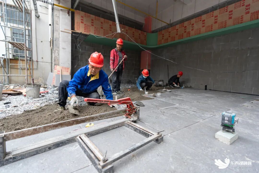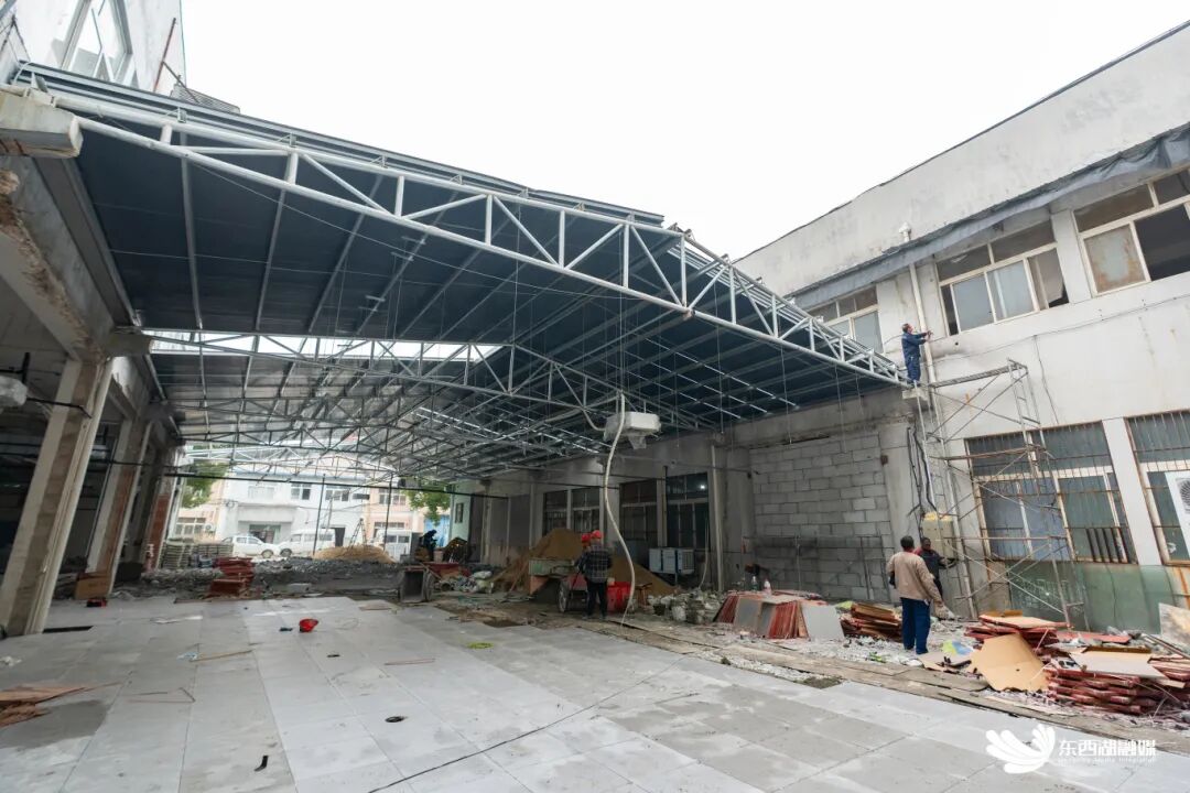 施工人员抢抓工期改造园区。