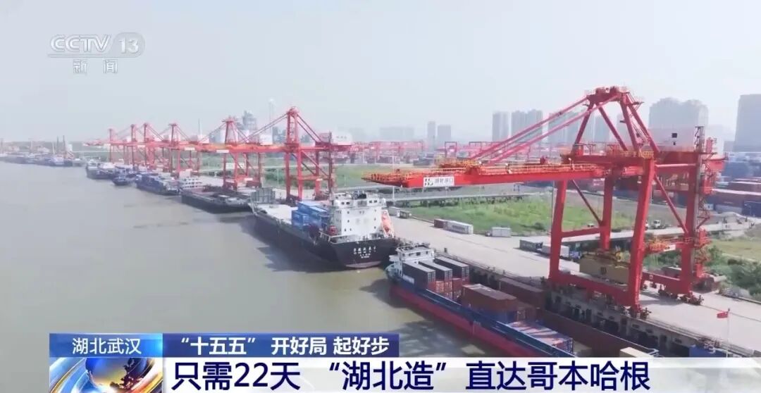 中欧班列就如同一支“钢铁驼队”,搭载着武汉及华中地区的汽车零配件、太阳能光伏组件、轻纺织品等货物,从武汉出发,到达德国的汉堡,再通过铁水联运,到达丹麦的哥本哈根,全程只需要22天左右。