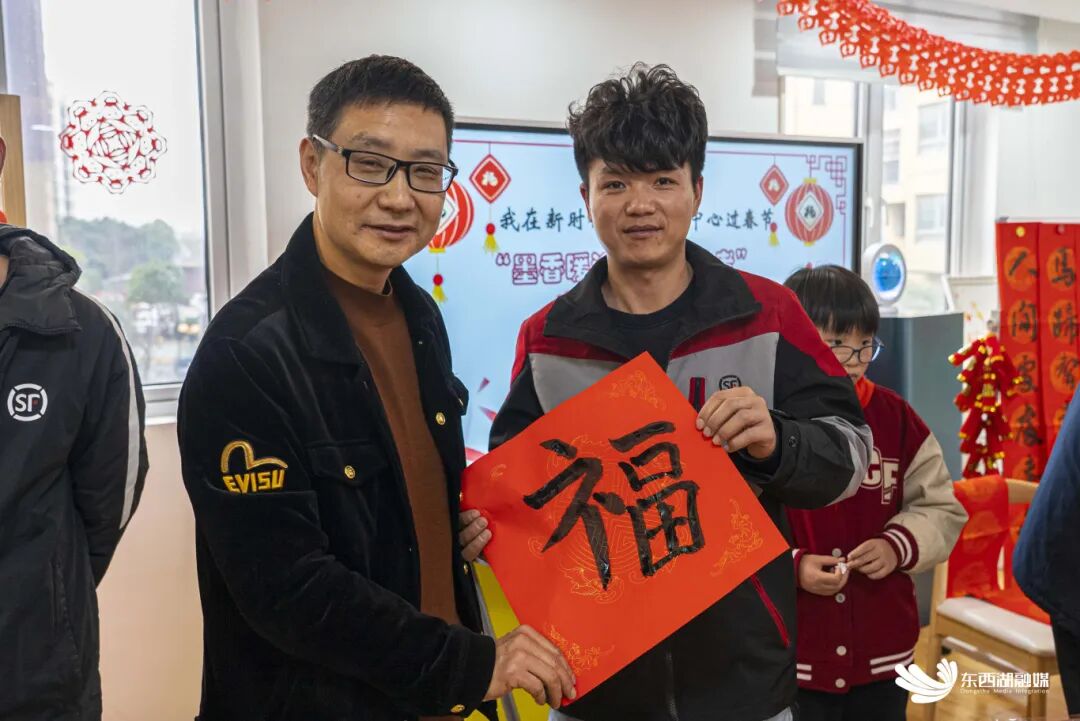 “平时忙着送快递,很少有机会静下心来写字。今天亲手写下‘福’字,感觉特别有意义。”快递员李师傅手持墨迹未干的春联,笑容淳朴而灿烂。红纸映笑颜,祝福蕴笔端,活动现场洋溢着温馨而喜庆的节日氛围。