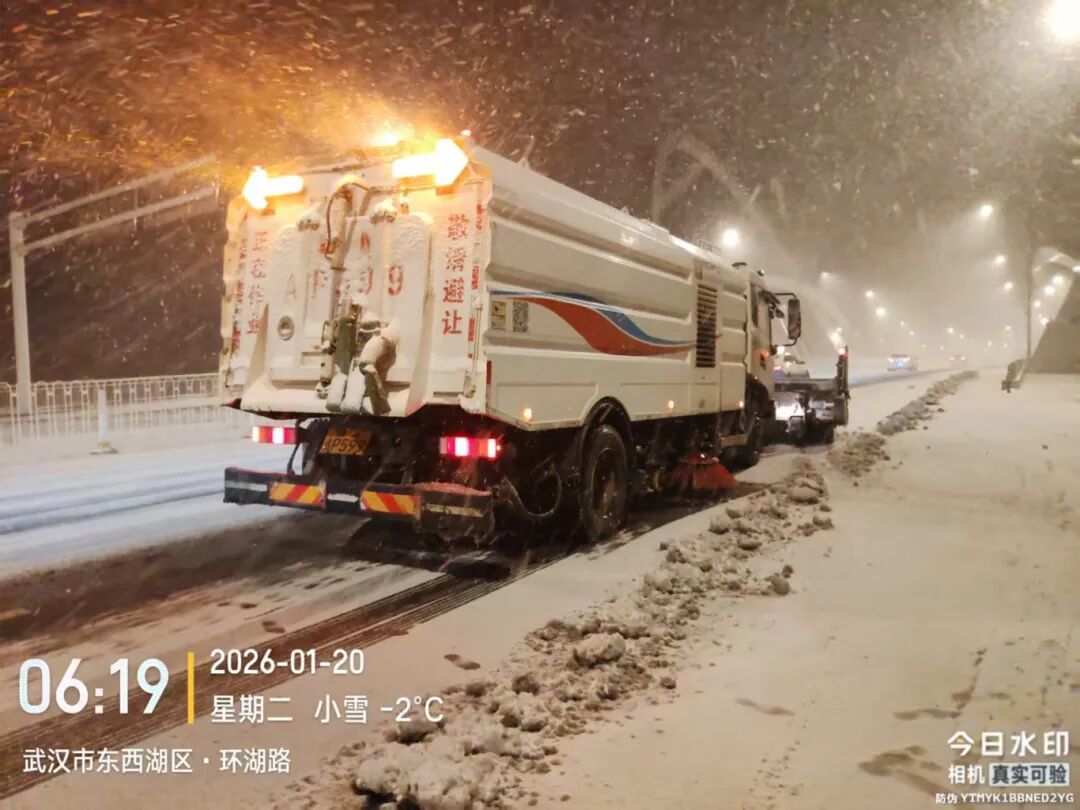 据统计,截至20日早晨7点,东西湖区累计出动人员940余人、巡查车辆106台,雪滚雪铲、撒布机等各类机械78台,预撒融雪剂约300吨,铺设草垫麻袋9880余条,处置结冰点位52处,全力保障民生安全。