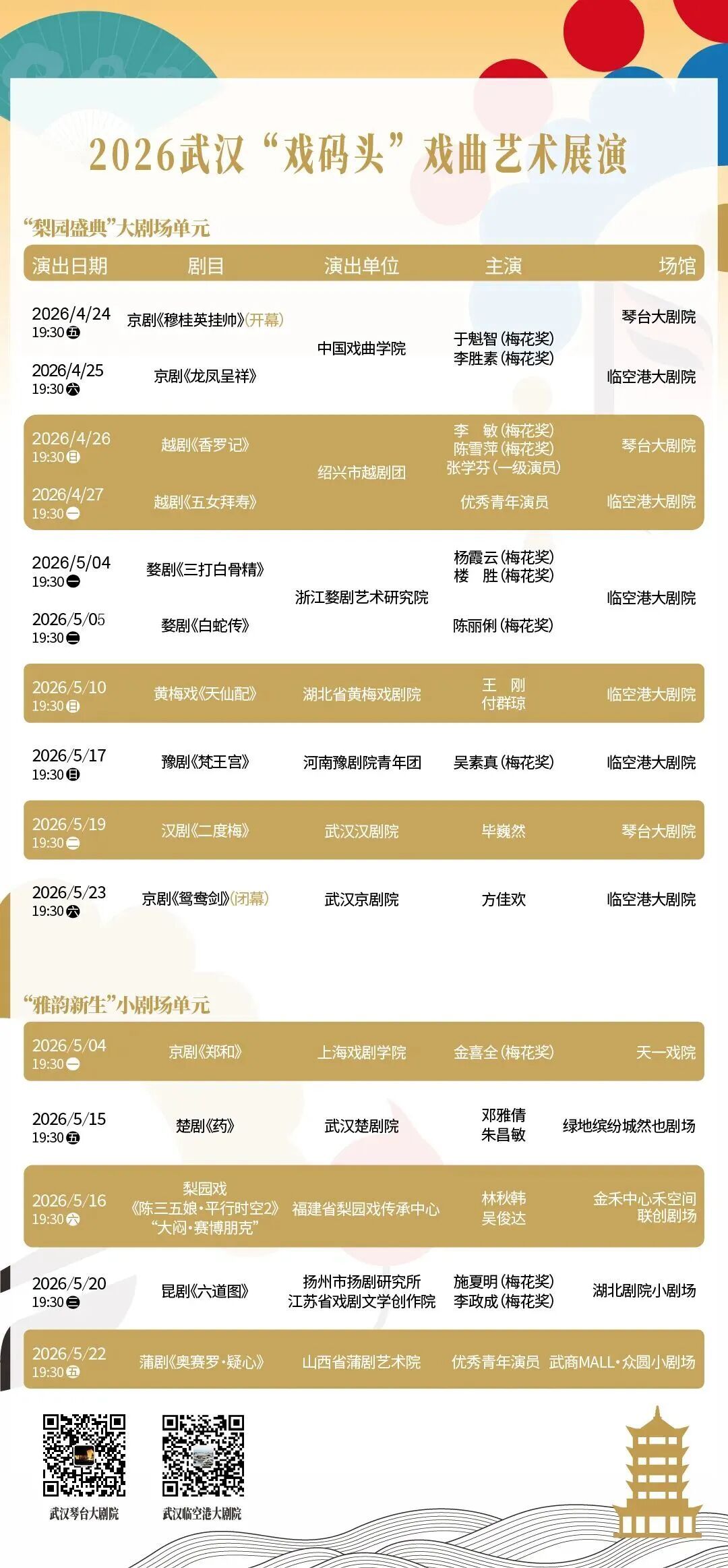 十大剧种十五场好戏,2026武汉“戏码头”戏曲艺术展演本周开票!