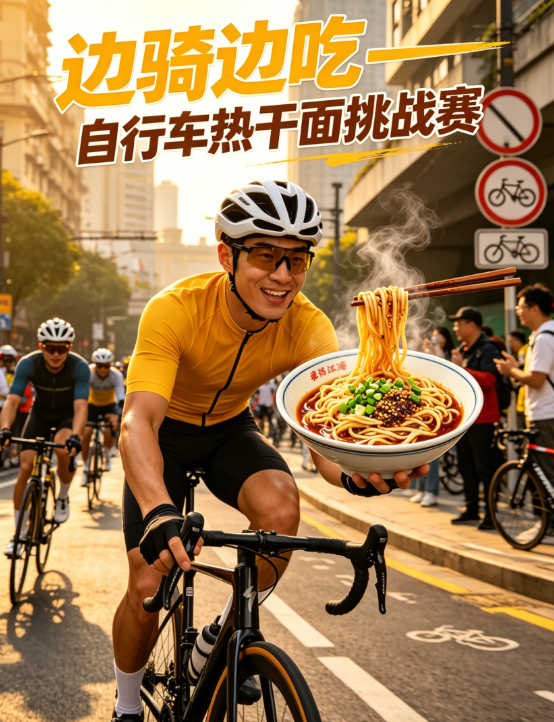 1.边骑边吃·“蔡明纬”自行车热干面挑战赛:融合武汉特色美食与趣味运动,展现本土饮食文化;