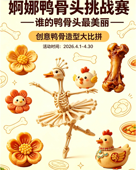 6.婀娜鸭骨头·“周黑鸭”鸭骨作画挑战赛:融合创意与品牌文化,展现周黑鸭卤味特色与艺术魅力。