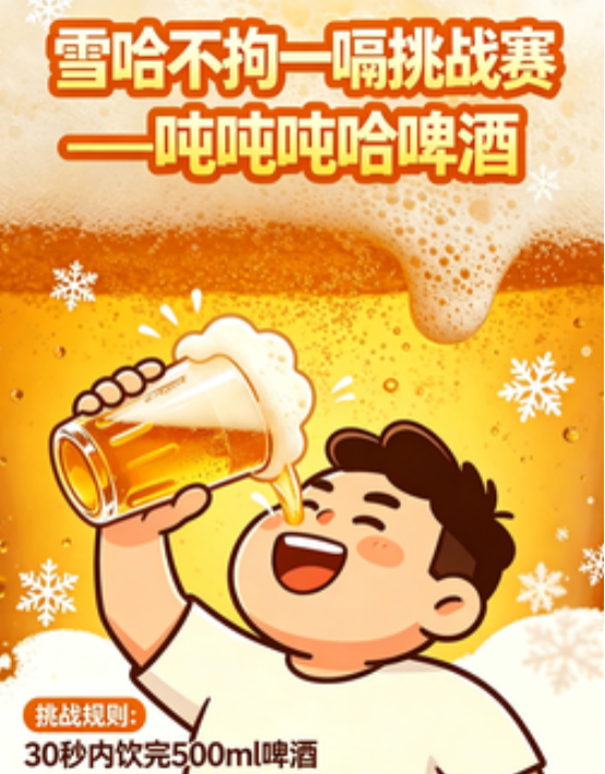 3.吨吨吨喝啤酒·“华润雪花”不拘一嗝挑战赛:聚焦啤酒品类,打造沉浸式畅饮体验;