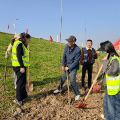 将军路街联合多家单位开展2026年植树节活动,40余名党员干部科学栽种50余株树苗,并悬挂姓名护绿牌,践行生态文明理念。