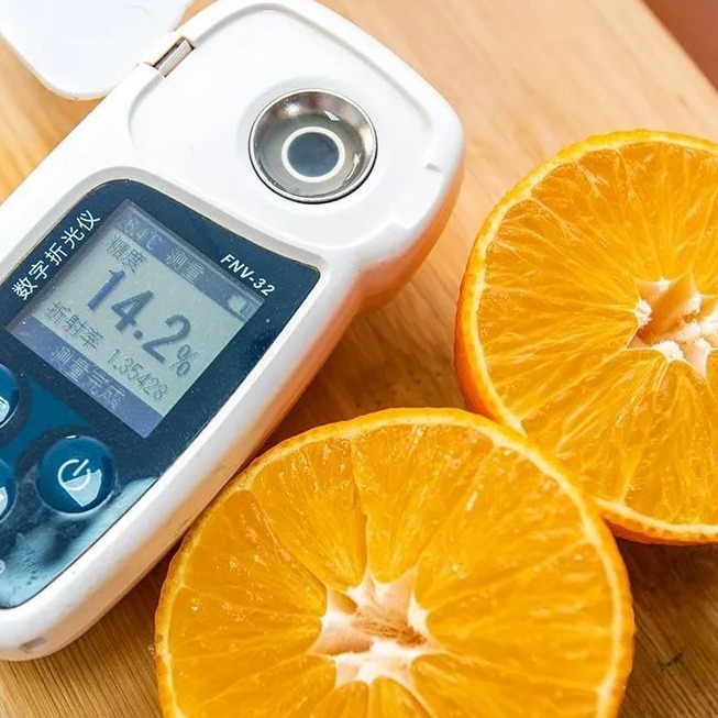 “样品先放门口,快递公司马上就到。”记者当天来到柑香源合作社时,合作社董事长林彩权正忙着跟妻子罗敏芝打包装箱。随机取出鲜果测量,数字折光仪糖度数值显示为“14.2%”。尽管糖度高于市售同一品种,林彩权仍然决定,等近日气温走低,鲜果酸度略降之后再量产上市,以确保“东山红美人”最佳口感。