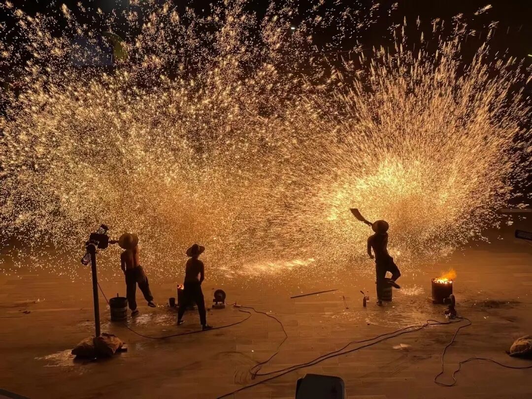 非遗打铁花、民俗表演、瀑布烟花、食品企业展……
