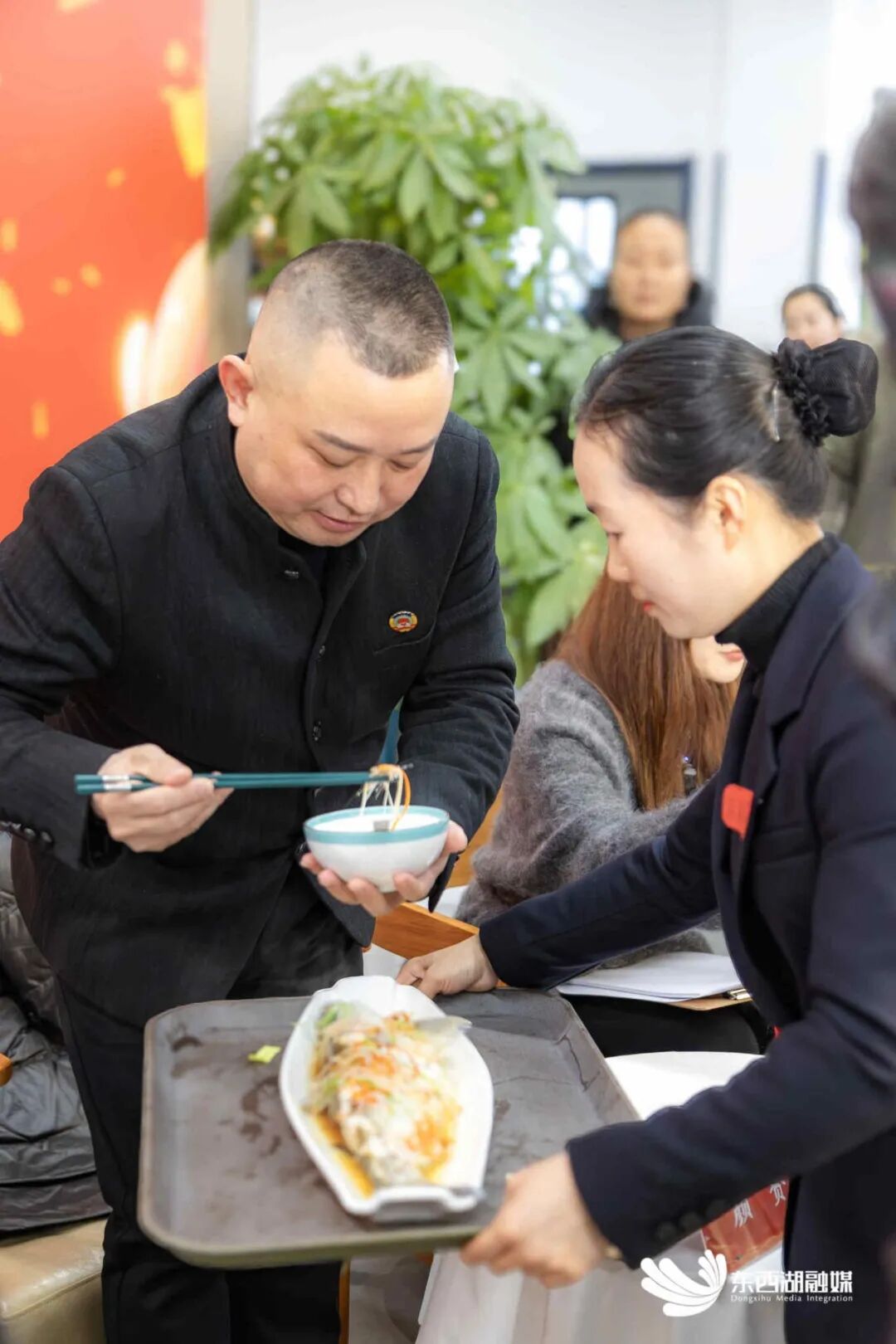 美食评委现场点评。