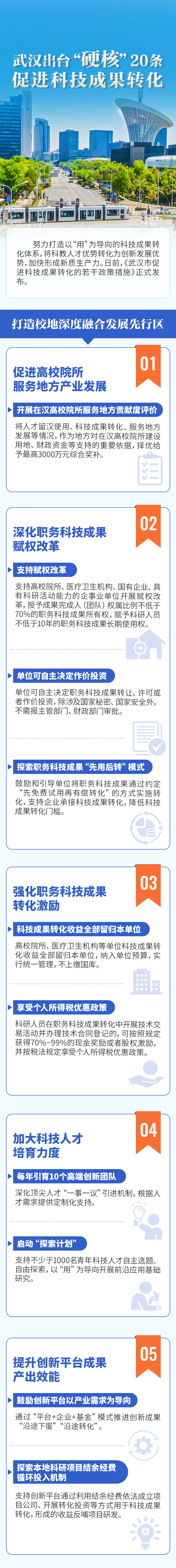 武汉出台“硬核”20条!最高3000万元综合奖补 2024-02-24 08:57 2月20日 《武汉市促进科技成果转化的若干政策措施》 正式发布 一起看看“硬核”20条 (来源 长江日报 武汉发布) 分享到