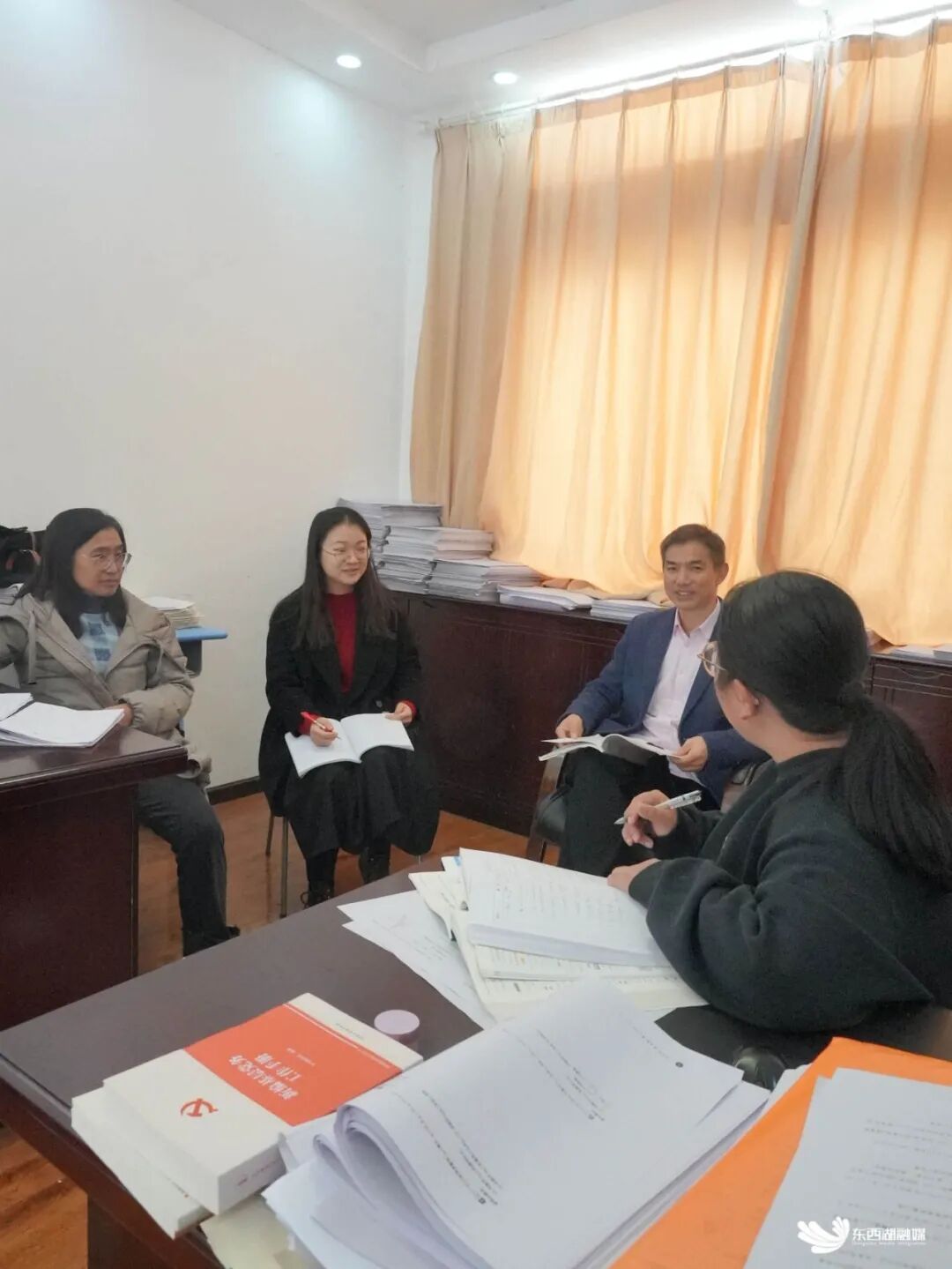 刘族刚与年轻教师沟通交流,带领他们快速成长。