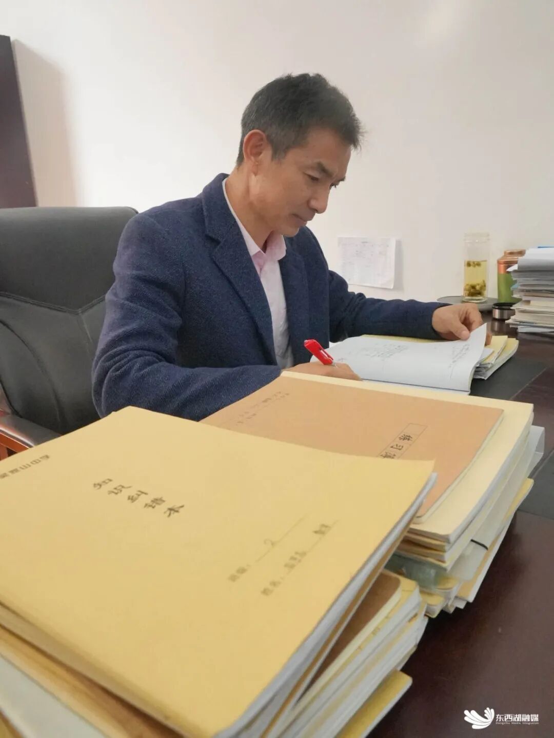 记者在武汉市吴家山中学名师工作室,见到全国优秀教师、湖北省特级教师刘族刚时,他正在准备公开课,手边一摞试卷等着阅读修改。