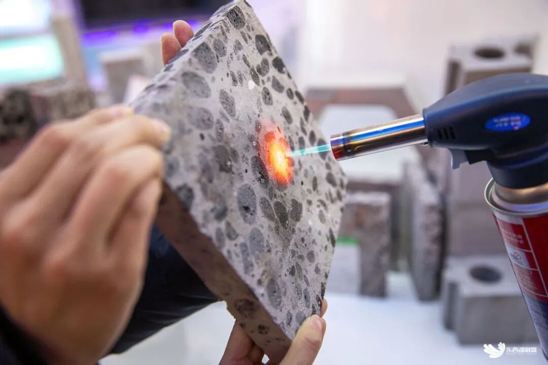被1000℃以上火焰燃烧2分钟,厚度2.5厘米的自保温砌块变黑硫化,但背面温度却没有多大变化——3月6日,记者在位于东西湖区吴家山街的湖北聚海环境科技有限公司(下称聚海环境)展厅,目睹自保温砌块阻燃隔热实验。这款可广泛应用于城乡建筑的全新保温材料,竟由废弃磷石膏和污泥制造。