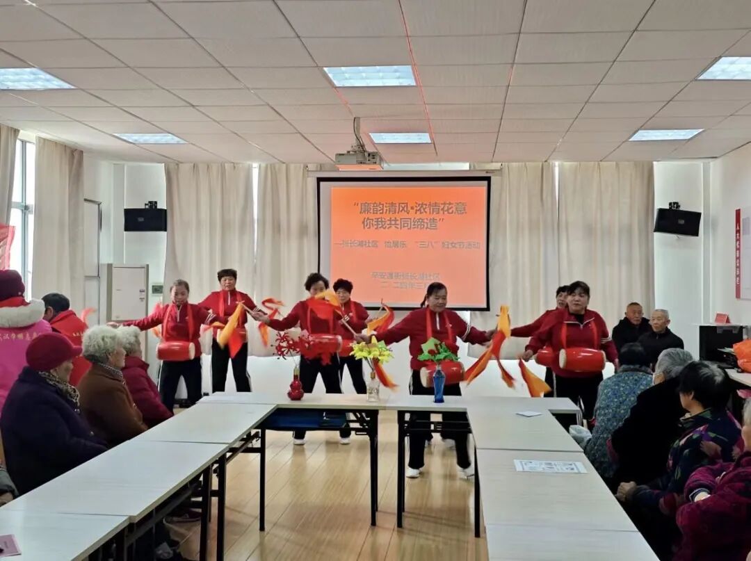 “一棵呀小白杨,长在哨所旁……”辛安渡街张长湖社区“三八”国际妇女节主题活动以颂“廉”歌环节开场,随后志愿者团队奏唱《小白杨》等歌曲,献跳《祖国你好》等舞蹈。活动现场的妇女同胞们,此刻不仅是母亲、妻子、女儿,更是舞台上绽放光芒的优雅舞者。