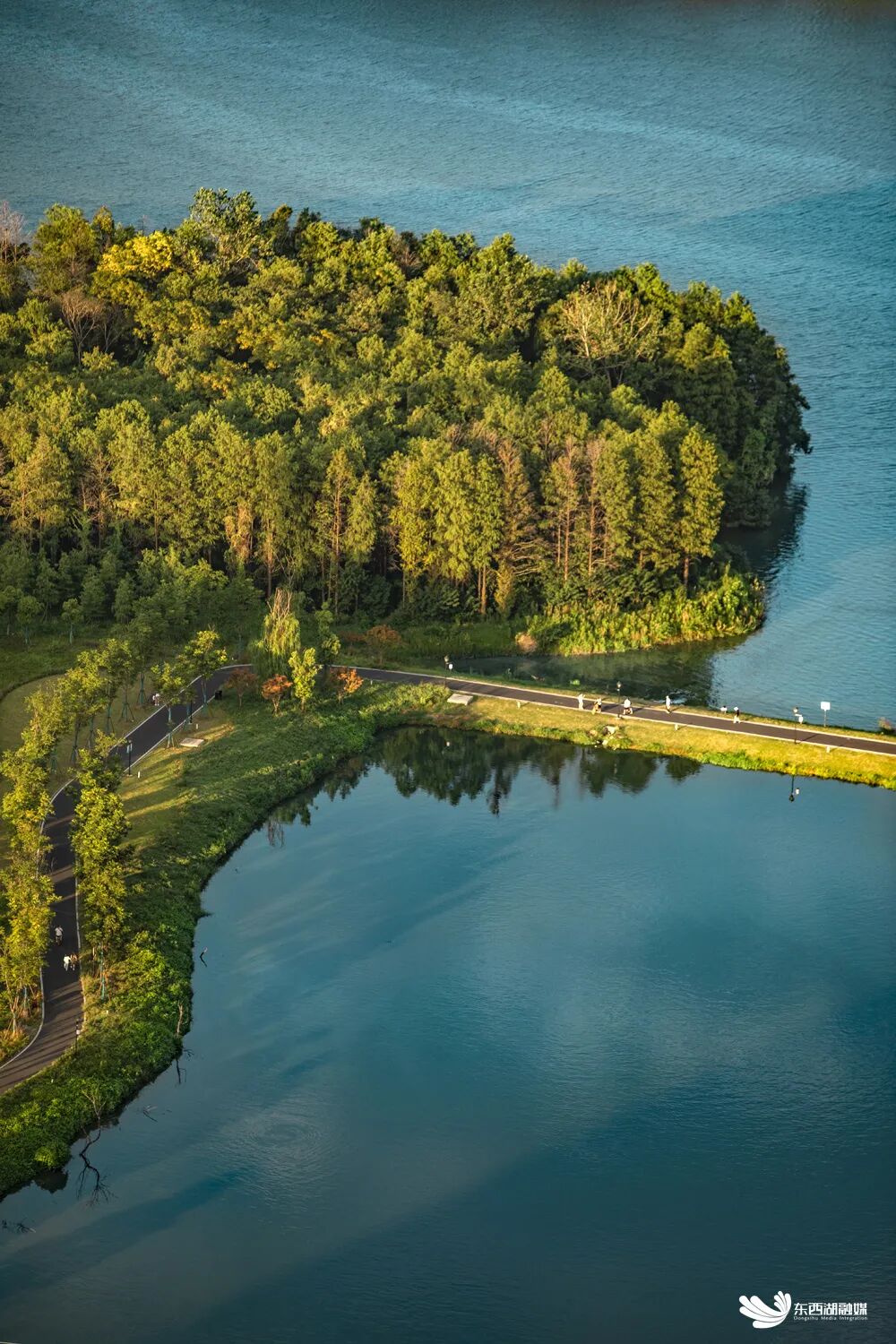 新晋“国”字头的杜公湖湿地公园,林带与水泽交相辉映,构建出层次丰富的湿地肌理。