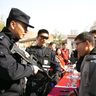 上午9点半,活动在该校交响乐队演奏的《歌唱祖国》中开场。随后,民警和师生同台演出,用原创歌曲、情景小品、脱口秀、有奖问答等形式进行宣讲和互动,现场气氛热烈。“网红”民警胡志红从网上走进现场,为师生剖析典型电诈骗局,提醒大家护好“钱袋子”;禁毒支队民警卞如薇现场向同学们宣讲毒品的危害;交管支队高航、胡诗琪等民警用情景剧形式,诠释交通安全的重要性;武汉市人民警察培训学院教官应红杰带来的山东快书《抓到一个假警察》,引得台下爆笑连连;特警支队猛士突击队8名特警队员全副武装登台进行枪操表演,上端枪、跪姿持枪、仰卧持枪……一个个连续的战术动作下来,台下响起了阵阵掌声。