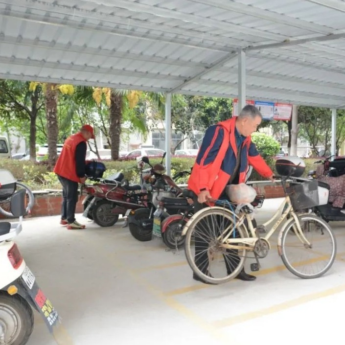 近日,4个非机动车棚顺利建成,可停放约300辆电动车,可同时为80台电动车充电,并配有消防设备。