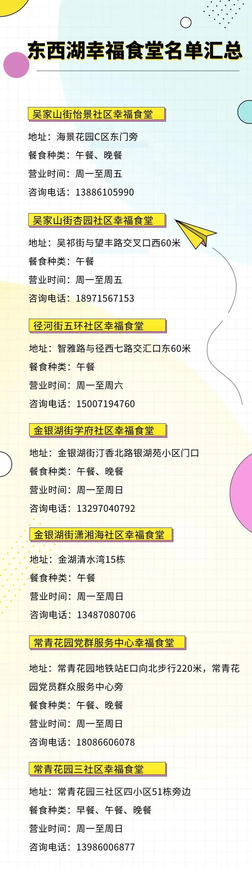 现在,东西湖融媒为大家汇总了东西湖区幸福食堂名单,给您提供参考。