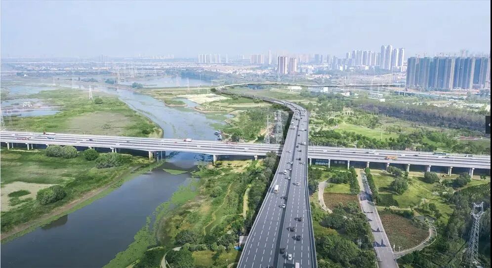 据了解,温馨路北延工程沿途跨越东西湖大堤、府河郊野公园、岱黄高速、后湖泵站、张公堤和三环线。设计方结合府河自然景观,将桥梁、桥下空间与公园纳为一体设计,让这条新路成为融合城市与自然的景观大道。