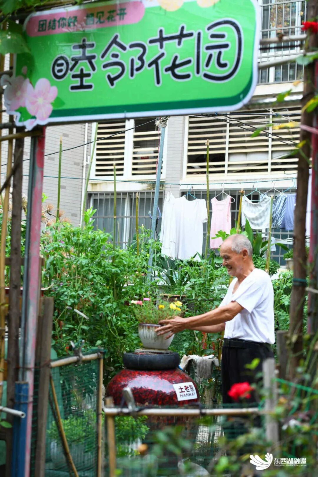 刘子善打理的花园让居民出门遇见美、转角闻花香。
