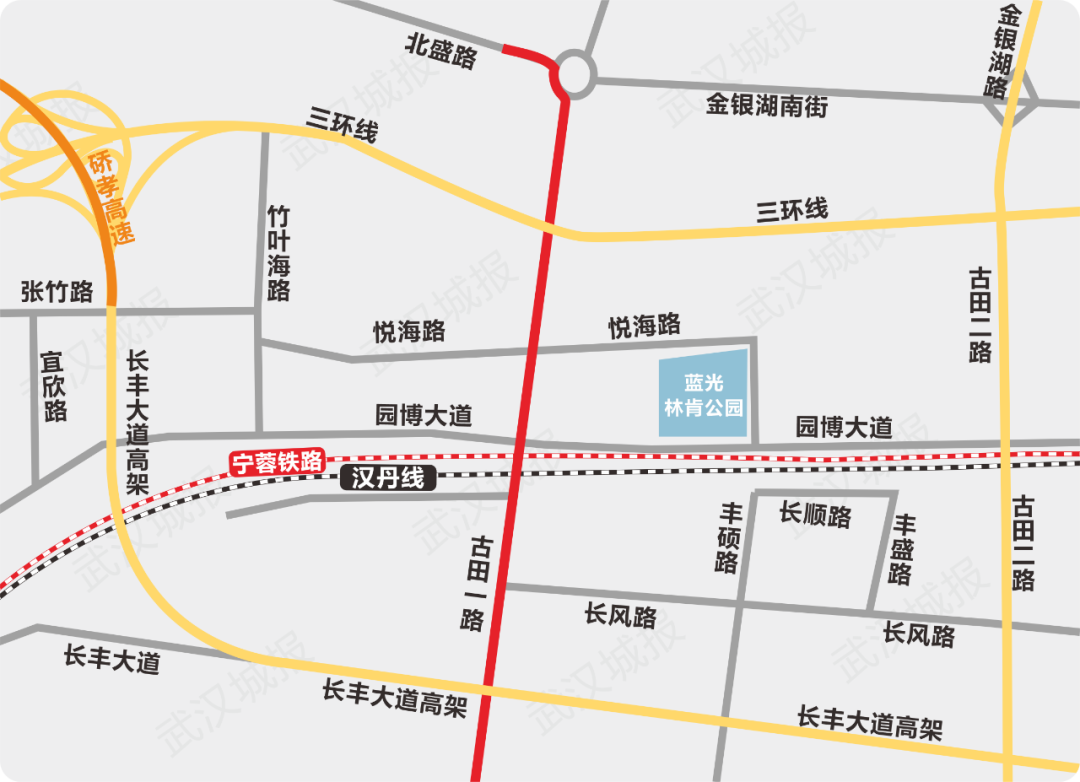 古田一路北段项目南起硚口区长云路交叉口以南,北至东西湖区金银湖南街,沿线跨越长丰大道、汉丹宁蓉铁路、三环线、张公堤。建成之后,将是汉口西部地区重要的南北向交通要道,不仅可以满足硚口区与东西湖区的交通转换,而且能够改善汉丹、宁蓉铁路与三环线之间区域居民往古田片区、金银湖片区的出行状况,对优化区域营商环境、促进汉口西部地区发展有着长远意义。