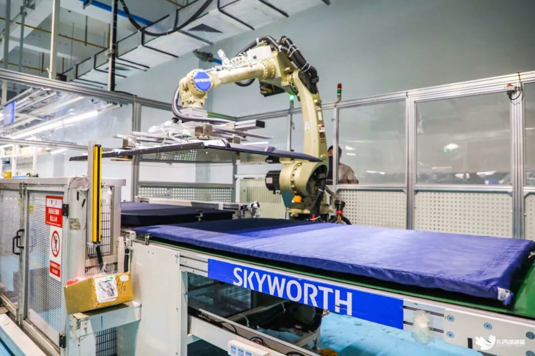 7月26日上午10时,武汉陆港枢纽核心区,创维平面显示科技有限公司自研开发的玻璃移载机器人,换装75吋电视机总装线刚满一周。一街之隔,TCL空调器(武汉)有限公司24小时全自动运转的黑灯工厂,每8秒就下线一台空调整机。