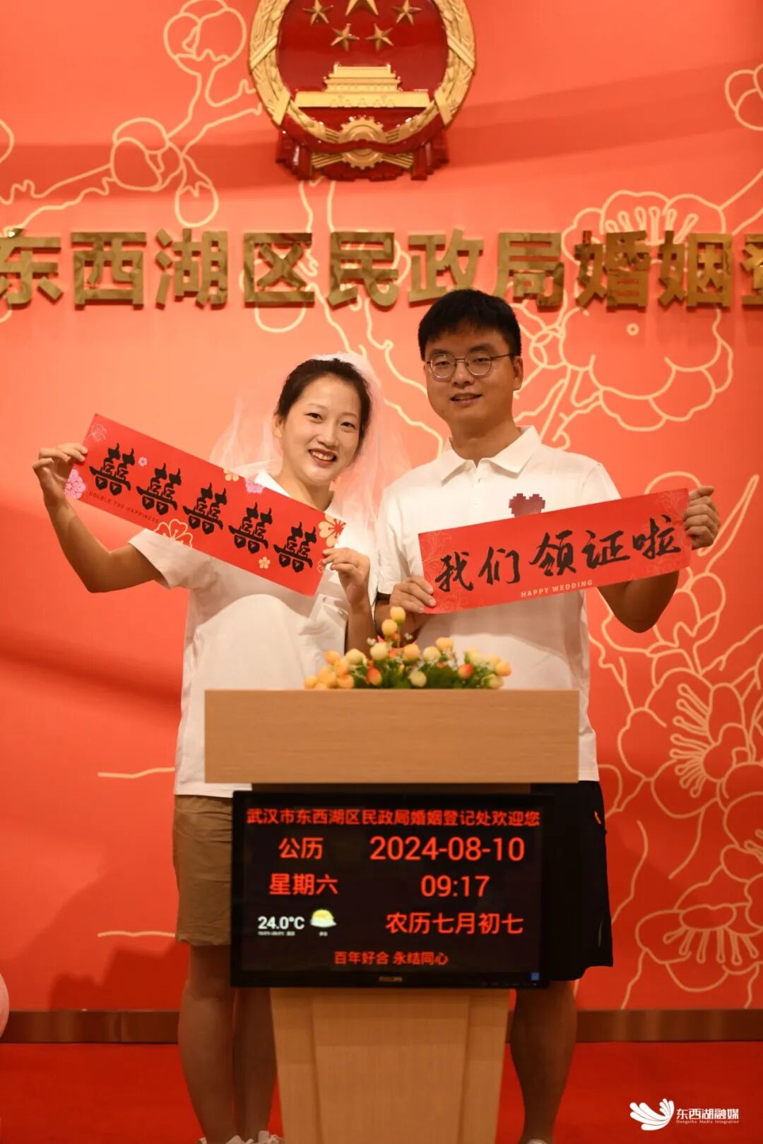 “就在东西湖登记结婚。”来自孝感的段志乾与妻子汪凤端“一拍即合”。因工作在东西湖相识相爱,这里充满了他们共同的回忆和对未来的期待。