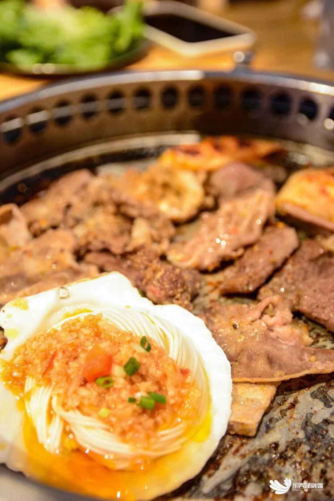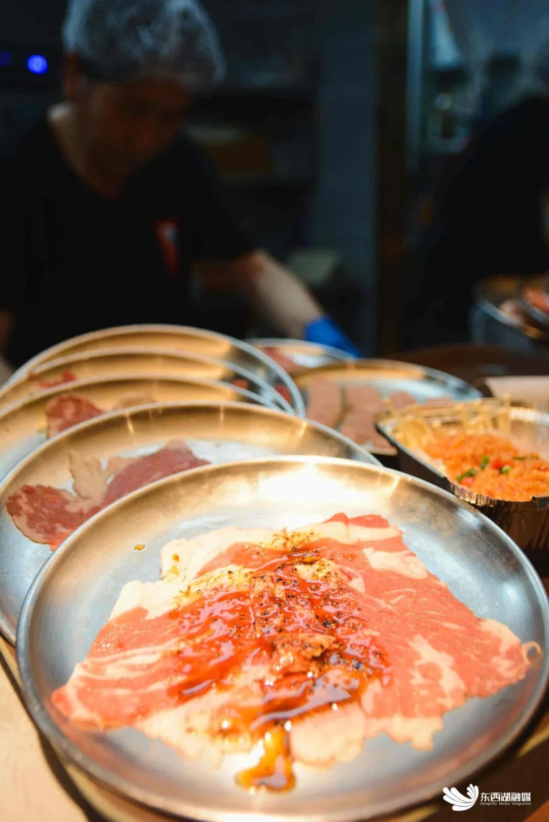 每日鲜切现做的精品肥牛,每一片都富含丰富的油花。黑椒牛排、精品猪五花、秘制鸡翅中,都是进店必点的菜品。说起菜品,陈旺强如数家珍。他介绍,店里每个月都有新品上市。“打算在东西湖再开几家店子,让大家吃到爽……”