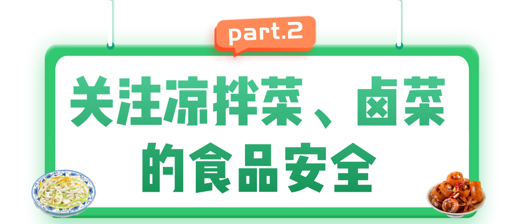 选择卫生条件良好的店铺购买和食用凉拌菜、卤菜。每次按需购买,确保能够立即吃完,不要在室温下久放。