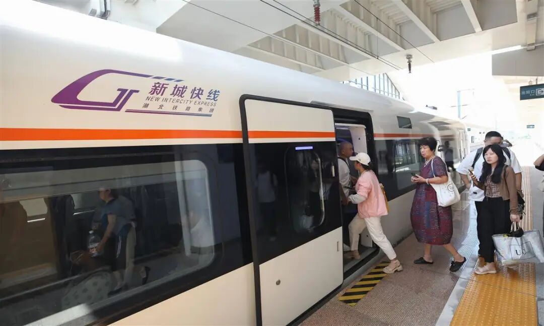 目前,在武汉东站每日办理“新城快线”列车最高达50列,最短间隔仅半小时,黄石北、大冶北、黄冈西、鄂州等车站日经停“新城快线”列车最高分别达21列、20列、22列、22列。