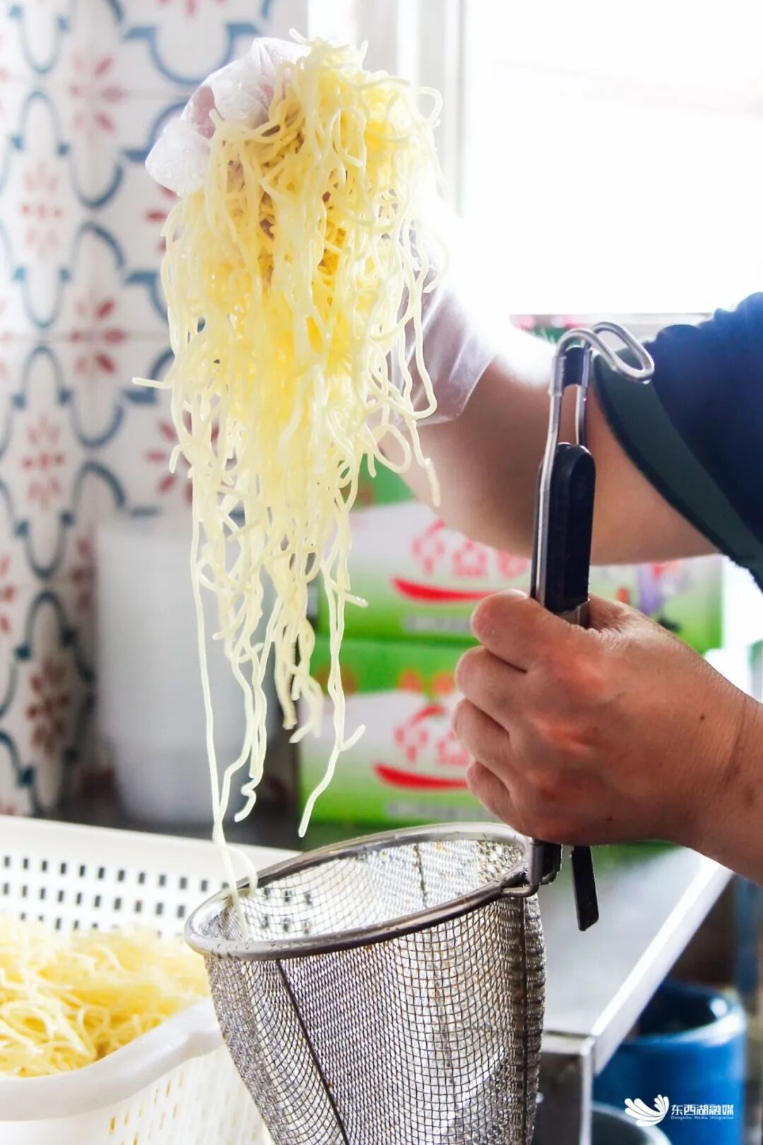常青九村牛肉热干面的师傅熟练的手法。