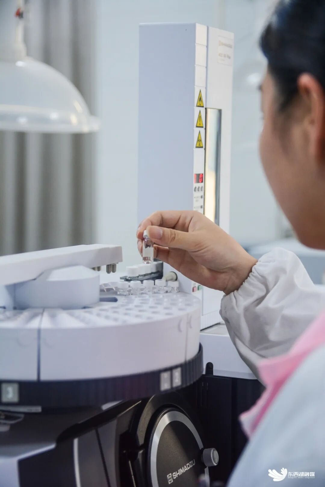 九信中药化验员运用智能设备检测中药材及饮片的禁用农药残留量。