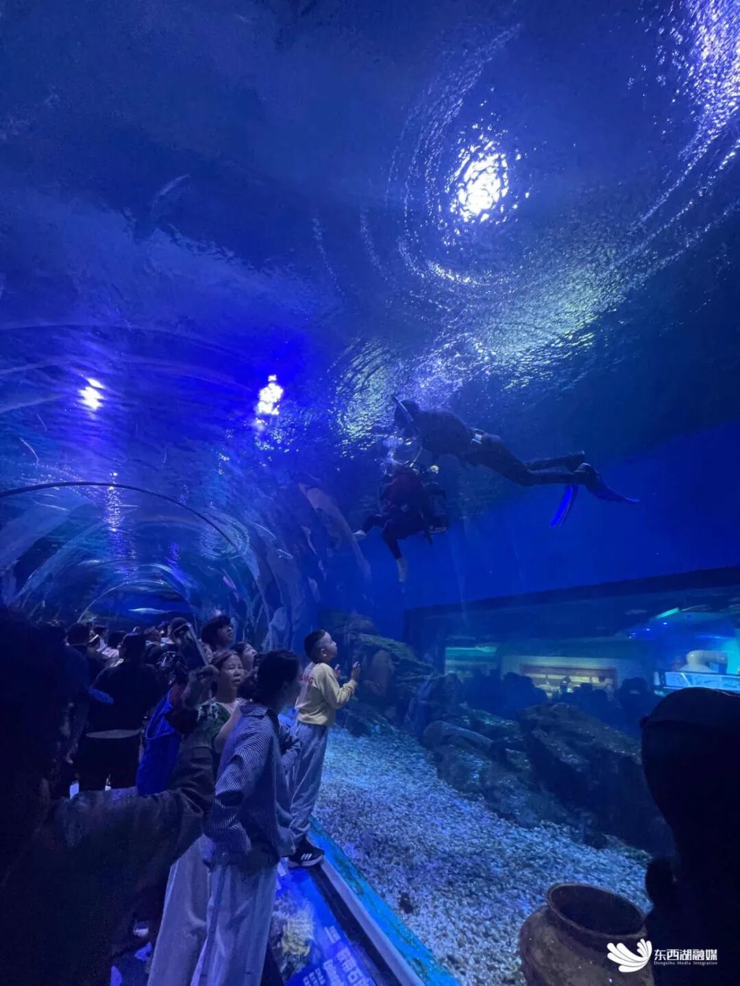 穿过幽蓝的海底隧道,仿佛置身于海底世界。