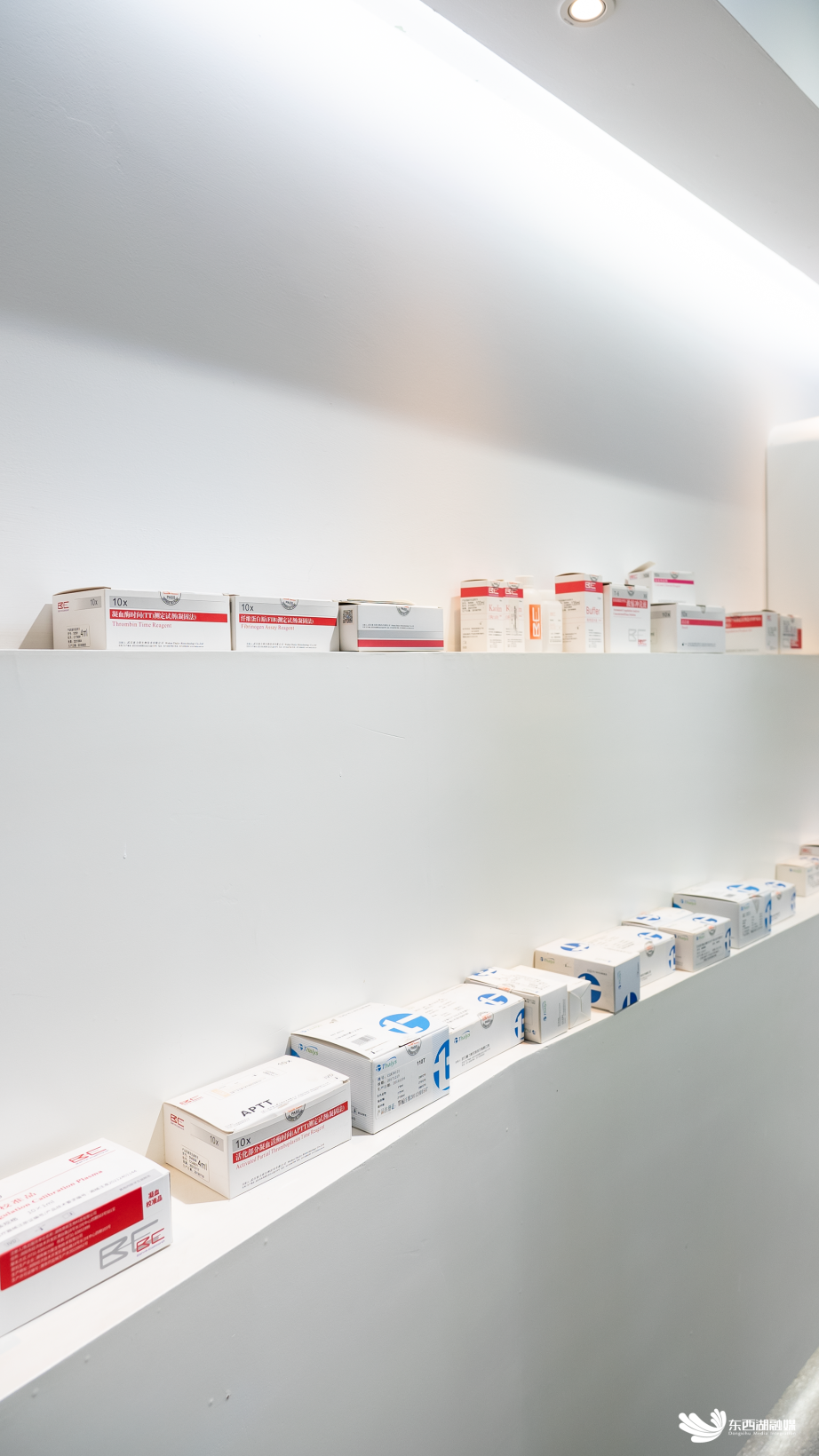 走进塞力医疗全资子公司武汉塞力斯生物技术有限公司(以下简称塞力斯生物)的生产车间,十几格产品展示柜里,摆放着红白色和蓝白色的试剂盒,这都是塞力斯生物自研的凝血类体外诊断试剂。红白色的用于适配国外检测机器,蓝白色的则是适用于塞力斯生物自研检测设备的试剂。从试剂到设备,塞力医疗都做到了自研自产。