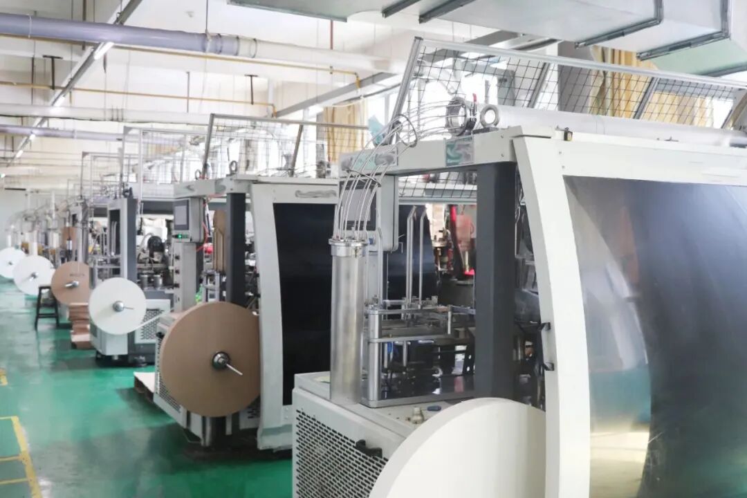 在最新引入的高速成型机生产线上,全生物降解纸杯、纸碗、杯碗盖源源不断地从机器里弹出,机台工作人员娴熟地进行检验、测试、包装。“相比之前的低速成型机,高速成型机产能提升了50%,并由一人操作一台变成了一人操作两台。”