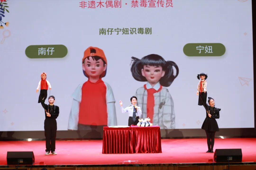 接下来,南宁市公安局禁毒支队带来禁毒主题木偶剧《三个蛋的故事》,告诉同学们“上头电子烟”的危害和可怕之处。南宁市烟草专卖局准备了烟草趣味科普节目,让同学们通过猜一猜、闻一闻、问一问的方式,认识和了解什么是电子烟,以及假冒电子烟的危害。