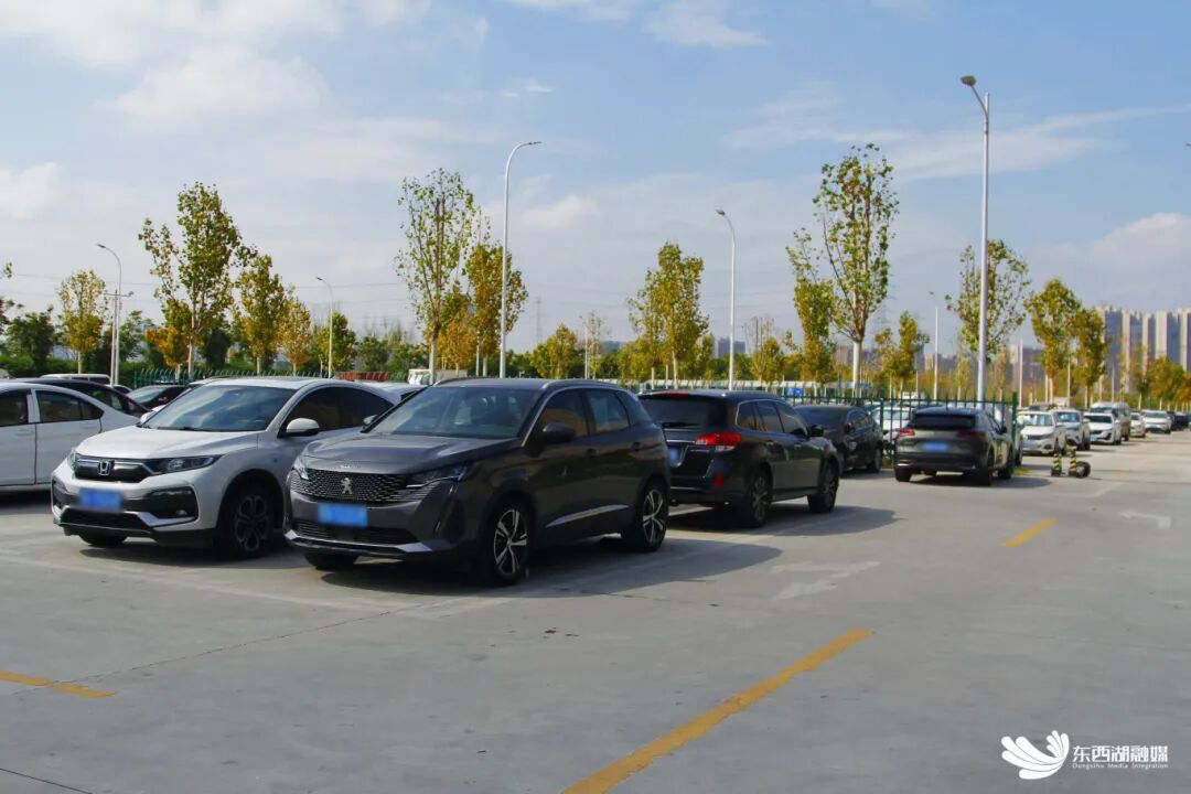 中午,市民姜丽萍把车停在银潭路半岛停车场后,走路回到对面宏图里小区的家,“一个月120块,很划算,走回家也就10分钟,还能沿着黄塘湖散散步,很舒服。今年停车场还新增了充电桩,我家电车正好能用上。”