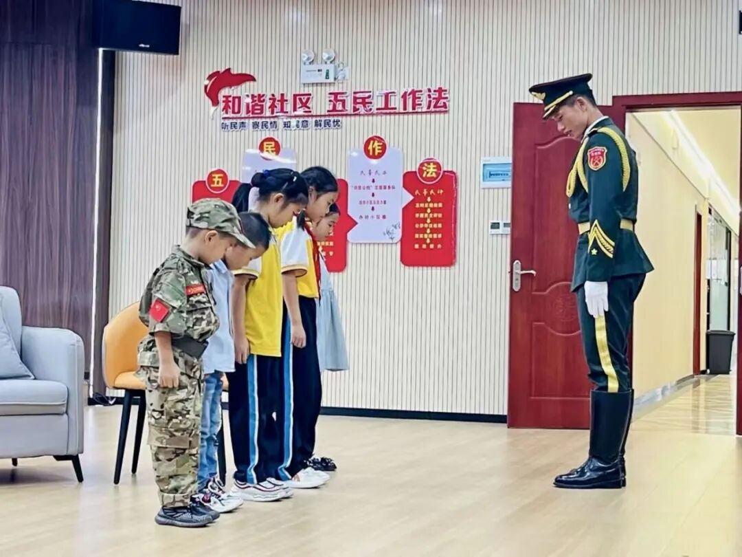 社区设立专门的训练场地,邀请辖区退伍军人担任教官,从抬国旗的姿势到升国旗的动作、从挂旗到扬旗,一步一步进行训练,让孩子们熟练掌握各项技能。