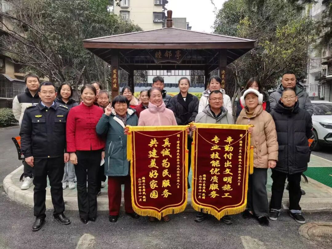 2024年12月25日,小区的吴桂芬、华多娣、王孝梅等13位居民,将绣有“真诚为民服务,共建美好家园”“辛勤付出文明施工,专业技能优质服务”的锦旗送到姑李路社区工作人员和施工队负责人手中,以表达感谢之情。