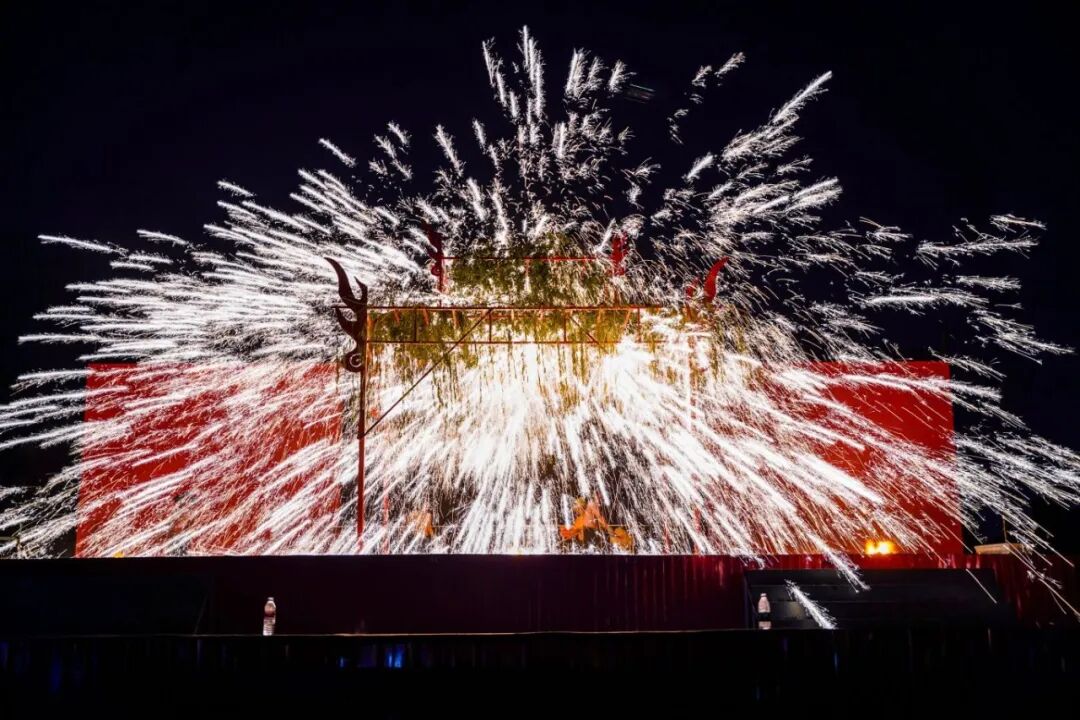 夜幕降临,众乐苑被点亮成一片璀璨的星空。风火轮、火焰秀、墙花、打铁花等13种火秀轮番登场,将夜晚的园博园点缀得如梦似幻。打铁花在夜空中绽放,就像一场金色的烟火雨,浪漫又震撼,让人忍不住想要拍照打卡留念。