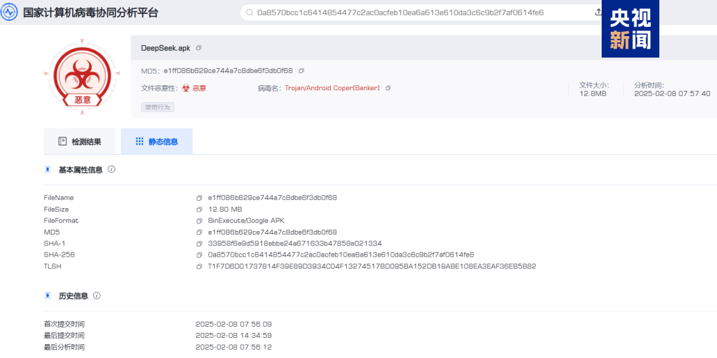 仿冒DeepSeek的手机木马病毒被捕获!重要提醒