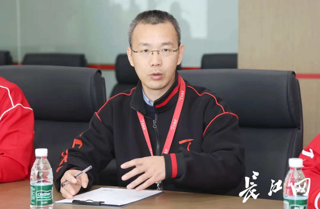 天融信科技集团副总裁、武汉研发中心总经理左世涛在座谈会上与实践团成员交流。王筝 摄