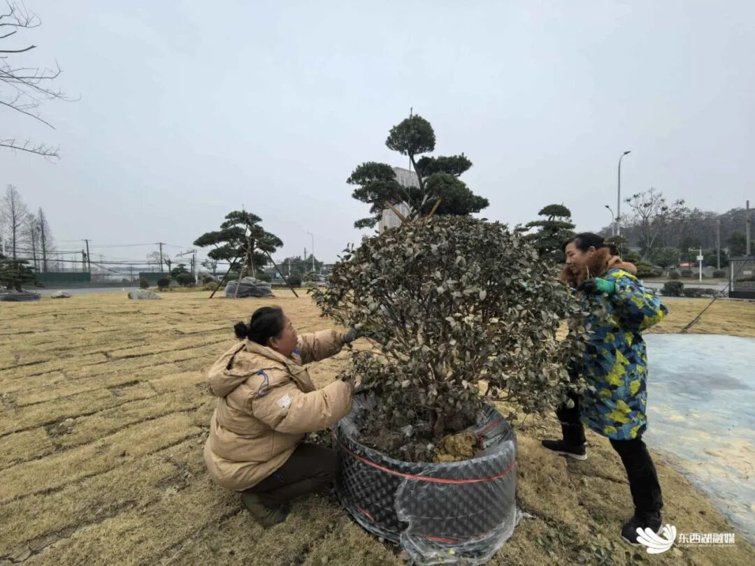 东西湖融媒记者在公园内看到,工作人员正对新栽种的绿植进行修剪,一匹正在奔腾的骏马置石造景呼之欲出。