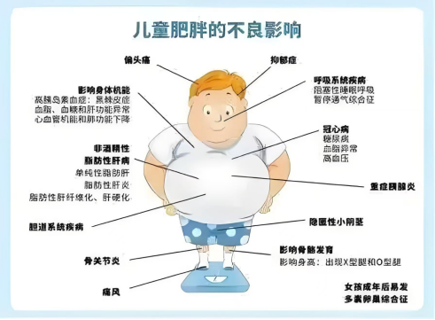 内分泌与性发育:过度肥胖会打乱儿童生长节奏,出现性早熟,过多的脂肪组织分泌雌激素,促使女孩乳房早发育、男孩乳腺增生,影响最终身高。肥胖女孩易出现多囊卵巢综合征,表现为月经紊乱、体毛增多、痤疮,成年后不孕风险升高。