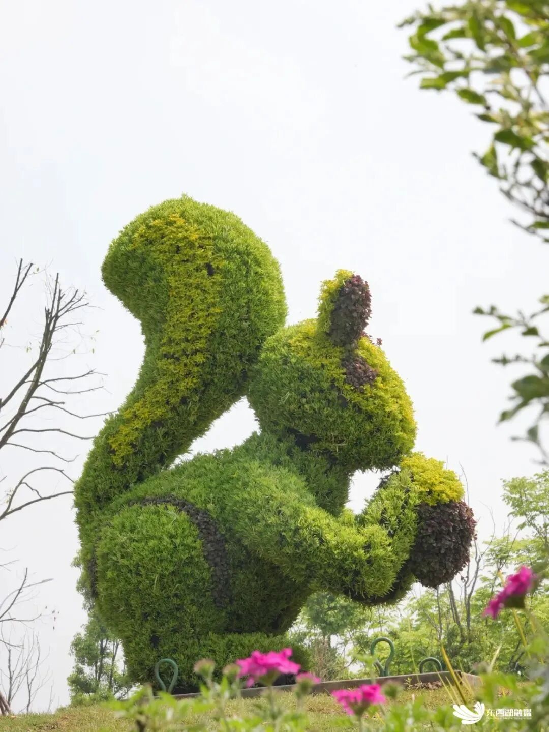 临近岭通大道节点口袋公园,远远看到一只俏皮可爱的小松鼠在街角“偷偷进食”。这一座栩栩如生的绿雕造型,灵感就取自走马岭的某食品加工企业产品形象。