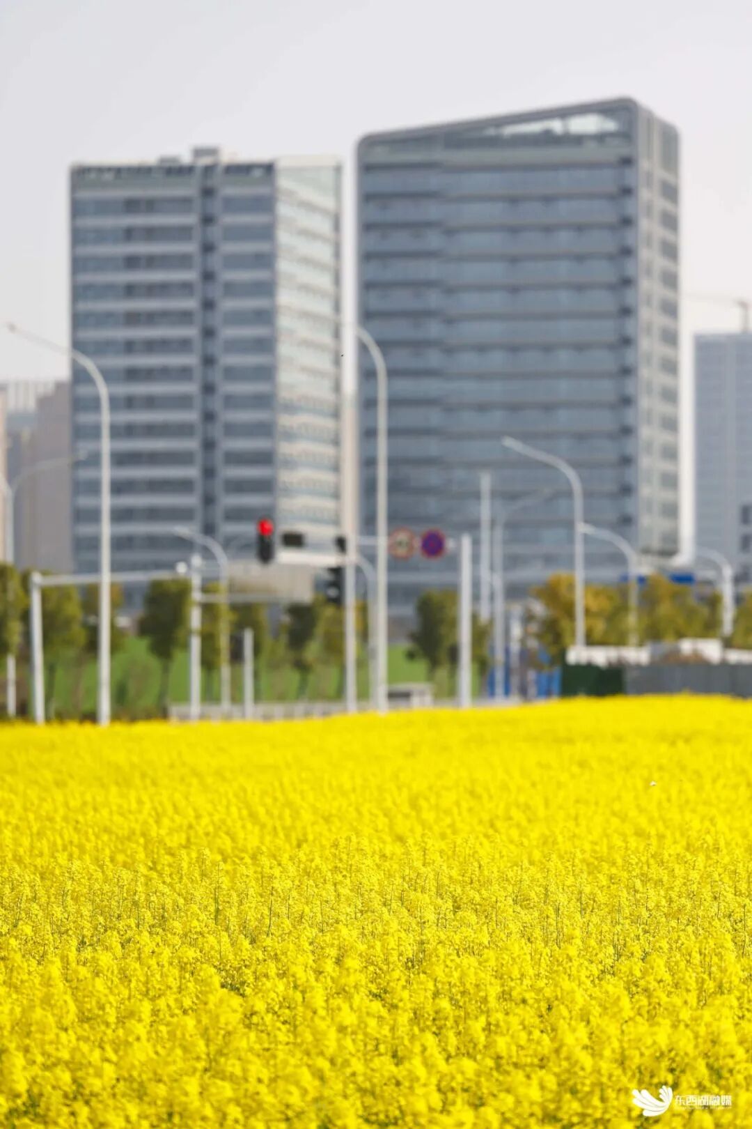 临空港新城的油菜花田与罗港市民农园相依相偎,宛如一幅浑然天成的田园画卷。
