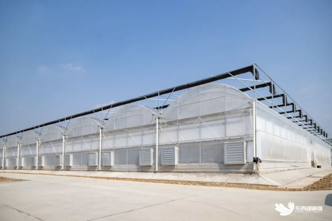示范园2025年1月正式投产,占地155亩,6个连栋大棚连成排,每个大棚占地10亩。