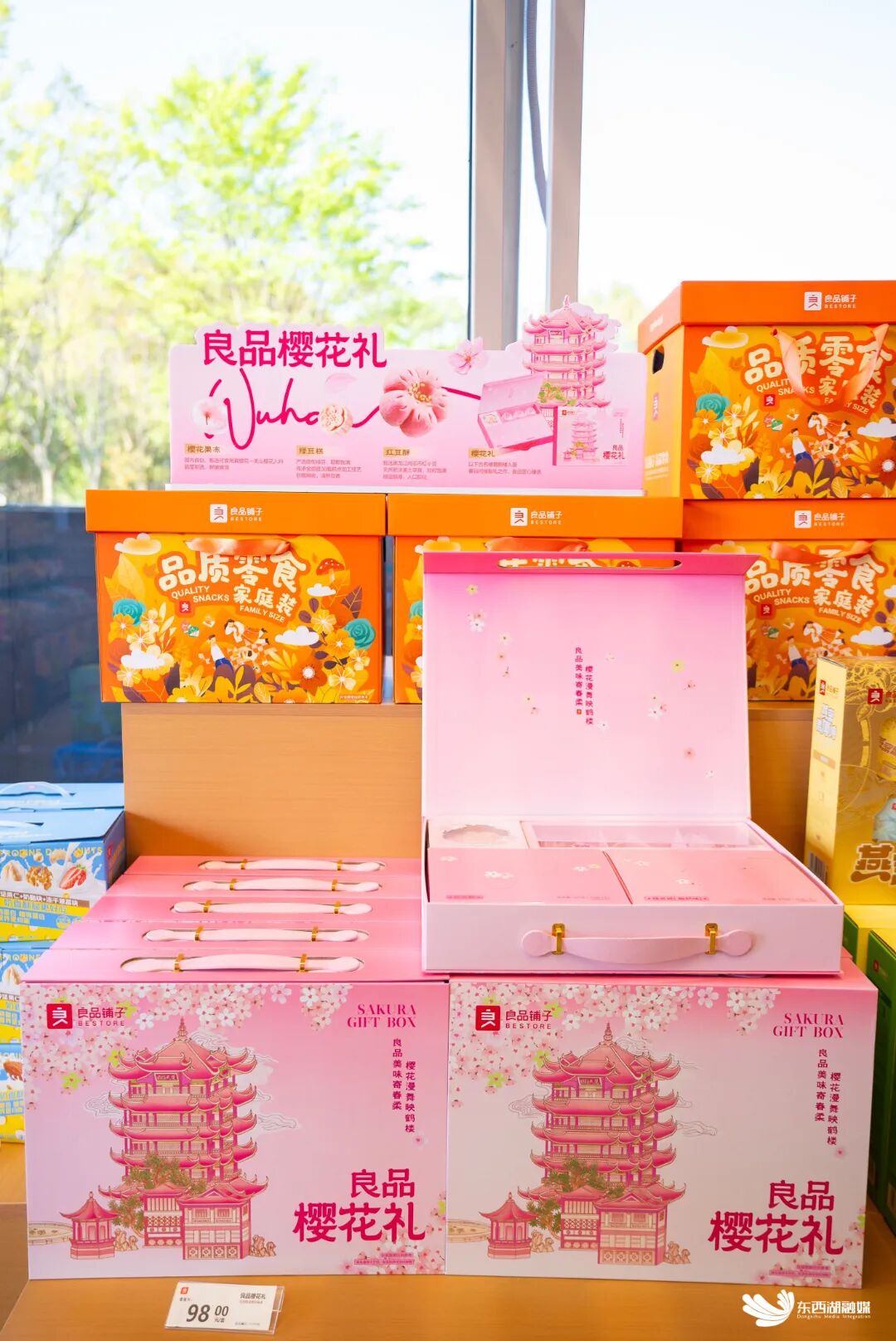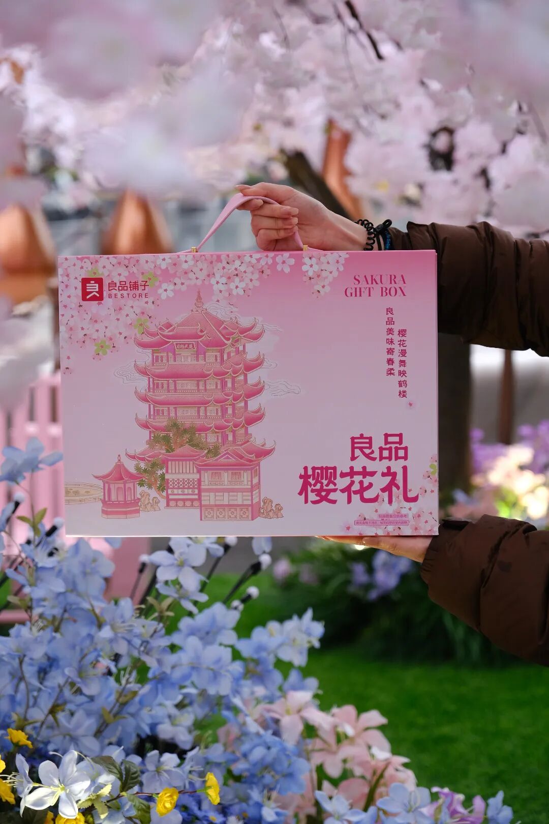 以花为媒、以礼传情。良品铺子在东西湖区10多个热门赏樱景点设立了主题展销点。