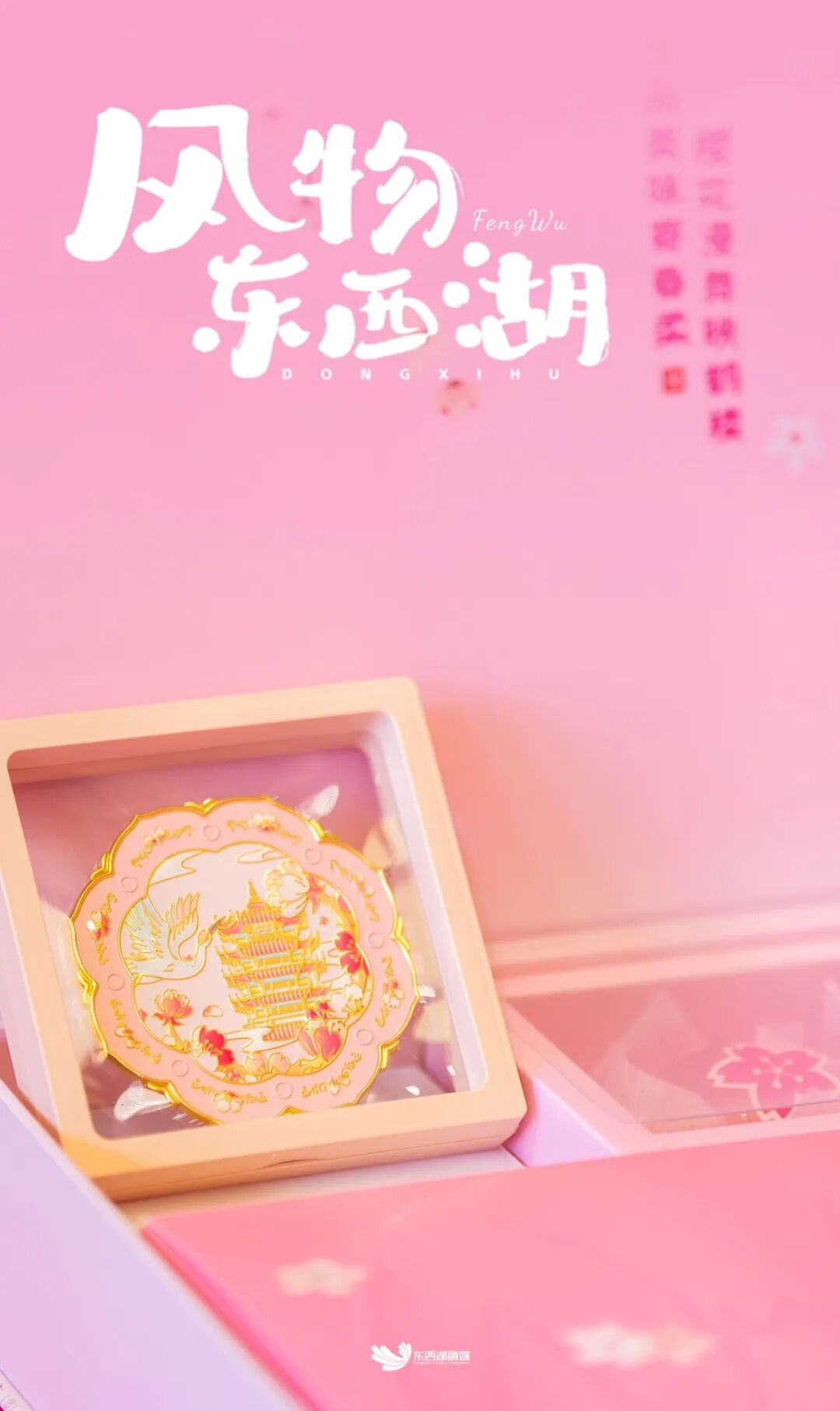 记者看到,这款樱花主题礼盒采用黄鹤楼飞檐线条为设计灵感,配以飘落的樱花纹饰,内置古风黄鹤楼铜镜,开启礼盒即见艺术体“武汉”字样。