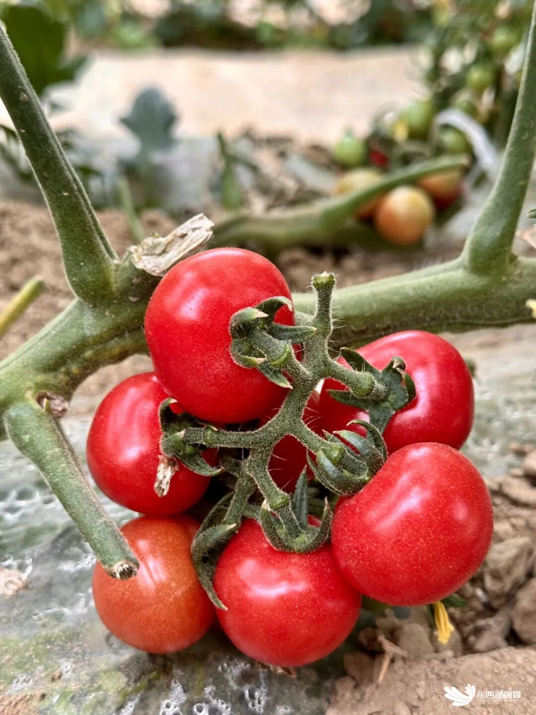 ✔采摘秘籍:找到番茄根部的第一个节点,向前轻轻一推,你就会得到一颗宝石般的“柏泉番茄”!