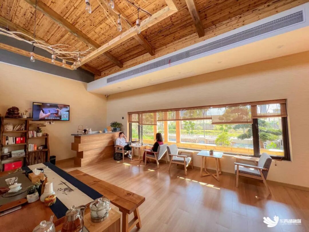 这是郷伴慈惠的首家中式茶馆,毛尖绿茶、陈皮红茶、菊花枸杞茶、茉莉花茶、陈皮普洱等特色茶清香扑鼻。茶馆的木门拥有百年历史,沉淀的都是光阴故事。惬意、闲适的消费场景,让游客能在快节奏的生活里停一停,独享一刻静谧时光。